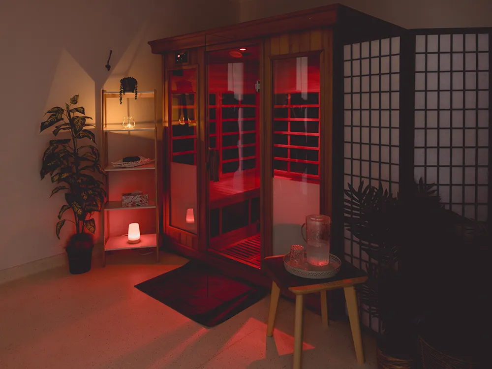 Our Infrared Sauna is situated in a sizeable, private room. The room is yours to use during treatment, allowing you space to undress, refresh with a drink of water and shower.
