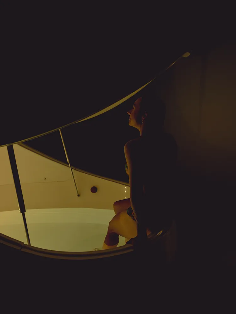The water in each pod is warmed to body temperature, and when you lie in the water, after a few moments, you feel weightless. Each pod is approximately 230cm long by 150cm wide inside, so no matter what your body shape or size is, most people fit comfortably.